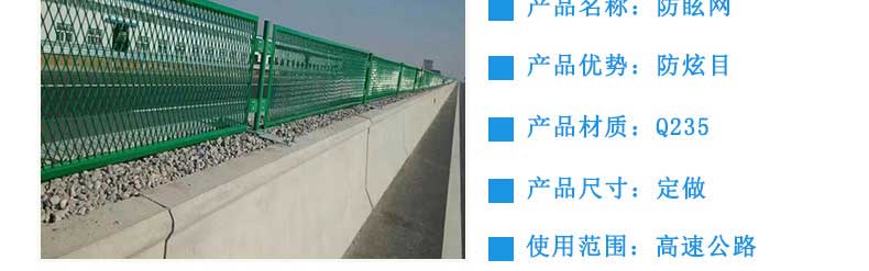 公路防眩網(wǎng)又被稱(chēng):“公路護欄網(wǎng)”,它是一種用于高速公路進(jìn)行防護的產(chǎn)品,高速公路隔離柵選用低碳鋼絲、不銹鋼絲或鋁鎂合金絲進(jìn)行編織焊接而成。通常不腐形式有電鍍、熱鍍、噴塑、浸塑,具有不腐、不老化、不怕曬、耐候等特點(diǎn)。既可以制作成長(cháng)久性護欄網(wǎng)墻,又可以作為臨時(shí)隔離網(wǎng)使用,在使用中只需采用不同的立柱固定方式便可實(shí)現。生產(chǎn)的高速公路隔離柵在許多高速公路上大量使用,并取得了良好的效果。 不腐處理:經(jīng)除銹、打磨、鈍化、硫化等工藝后,采用鍍塑處理,色彩為果綠色,鍍層厚度為0.6~1.6mm,鍍粉采用不老化性能好的耐候性樹(shù)脂粉料,鍍層顏色一致,表面光滑,不允許有流掛、滴瘤或多余結塊。鍍件表面應無(wú)漏鍍、露鐵等缺陷。 高速公路護欄網(wǎng)的規格: 網(wǎng)片尺寸:1700mm高×2500mm寬/1800mm高×2500mm寬 / 1800×3000 / 2000×3000 / 1500×2500等; 絲徑(焊網(wǎng)鋼絲直徑)范圍: 2.5mm- 6.0mm; 常用規格 3.0mm, 3.2mm, 3.5mm, 3.8mm, 4.0mm; 網(wǎng)孔尺寸:25×75mm-150×300mm;以50×100/75×150/50×200/60×150常見(jiàn); 立柱及邊框:邊框: 20×30或20×40mm矩形截面焊管;0.8/1.0/1.2/1.5mm厚方管; 立柱:48mm×1.0/1.2/1.5/2.0mm厚圓管 60*60*3mm方管。頂部蓋有塑料防雨帽或者焊接蓋。 |