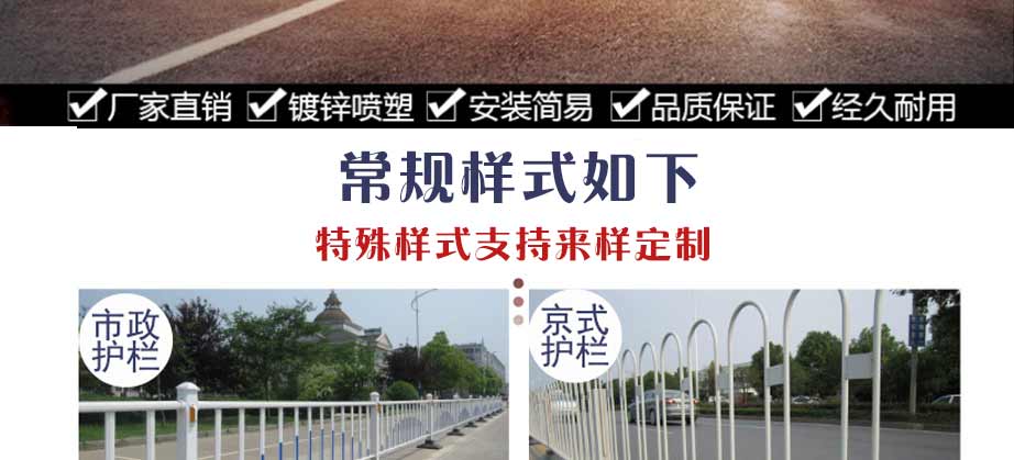 市政道路護欄 市政道路護欄又叫做城市交通鍍鋅噴塑鋼護欄。它美觀(guān)新穎, 易安裝,可靠,價(jià)錢(qián)優(yōu)惠。主導產(chǎn)品:太陽(yáng)能防眩光護欄,鍍鋅鋼質(zhì)隔離欄,市政道路隔離護欄,人行道路護欄,機動(dòng)與非機動(dòng)隔離護欄、道路中心隔離護欄、帶廣告牌道路隔離護欄、河道護欄、草坪花壇護欄等市政道路隔離護欄規格多樣、品種多,可以任意選擇高度、色彩。適用城市交通要道、高速公路中間綠化隔離帶、橋梁、公路、鄉鎮公路及各公路收費口等的隔離。 特點(diǎn) 1、市政護欄有美觀(guān)、實(shí)用的特點(diǎn)。 2、本產(chǎn)品的安裝方便,適用于各種市政建筑、道路使用。 3、市政護欄是目前受歡迎的道路隔離護欄其一。主要用于場(chǎng)區隔離帶,市政工程隔離帶,園林護欄。市政建設中的公園、草坪、動(dòng)物園、池湖、道路、及住宅區的隔離與防護;賓館、酒店、超市、娛樂(lè )場(chǎng)所的防護與裝飾。 用途 市政護欄廣泛使用于市政工程,道路,工廠(chǎng),開(kāi)發(fā)區,園林廣場(chǎng)等場(chǎng)所的防護及裝飾美化;還可用于小區、庭院、別墅,其線(xiàn)條流暢、簡(jiǎn)潔美觀(guān)、富有濃郁的現代氣息,讓小區生色,讓庭院生輝,讓別墅具有時(shí)代的品位。;其產(chǎn)品造型美觀(guān),而且牢固,不腐性好,安裝簡(jiǎn)單、維修方便、容易清洗、經(jīng)濟實(shí)用,免除維修,結構美觀(guān),與環(huán)境協(xié)調性好。是城市環(huán)境工程的主選產(chǎn)品! |