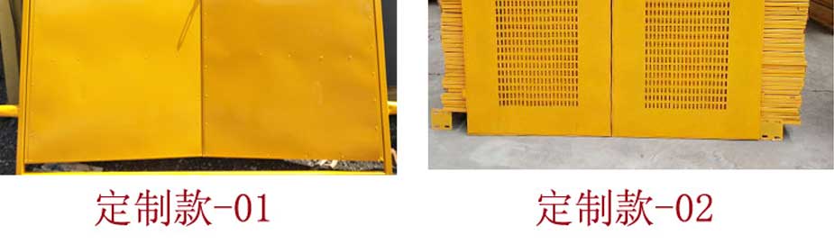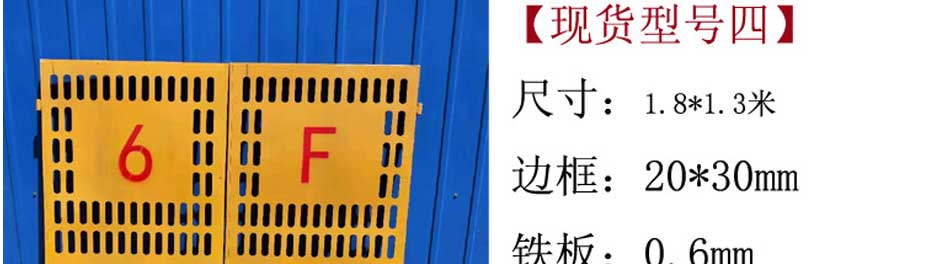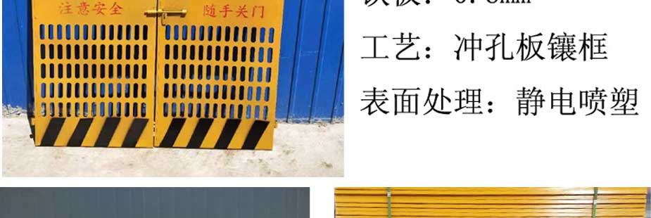 電梯防護門(mén):又可以稱(chēng)為移動(dòng)圍欄,臨時(shí)隔離欄,移動(dòng)式圍欄網(wǎng)臨時(shí)護欄網(wǎng),電梯井防護門(mén)主要規格: 絲徑:3.6-6mm 孔徑:50X200mm 75X150mm 80X160mm 100X200mm等 網(wǎng)片高度:1.0-2.0m 網(wǎng)片寬度:2.0-3.0m 施工電梯門(mén)表面處理:熱度鋅、 浸塑、 噴塑、 噴砂、 靜電噴涂等。 顏色:以綠色為主(黃色,藍色等) 臨時(shí)護欄網(wǎng),電梯防護門(mén)是適用臨時(shí)隔離,臨時(shí)隔斷,臨時(shí)圈圍,電梯井防護隔離,是靈活性強的產(chǎn)品。 主要采用可拆接構件將護欄主片與底座或防護柱進(jìn)行標準連接,等特定需要的時(shí)候可輕松拆除,進(jìn)行移動(dòng)安裝。 電梯防護門(mén)施工電梯門(mén)主要構造特點(diǎn):網(wǎng)片小巧,底座防護性能強,造型美觀(guān),可根據客戶(hù)需要定做生產(chǎn)。 以上規格,顏色等也可根據客戶(hù)需要加工定做。產(chǎn)品名稱(chēng):施工電梯外架樓層防護門(mén) 產(chǎn)品用途:建筑工程施工電梯外架樓層防護 電梯防護門(mén)施工電梯門(mén)用材:20*30mm方鋼(25*25mm普通方鋼)30*60mm孔徑菱形鋼板網(wǎng) 1.0厚鋼板(0.6厚鋼板)角鋼壓邊(可另定制) 電梯井防護門(mén)施工電梯門(mén)分類(lèi):通用版、標準版、加厚版(定制)(不同版本的產(chǎn)品主要區別在于用材不同,使用年限不同,使用年限分別為三年、五年、十年) |